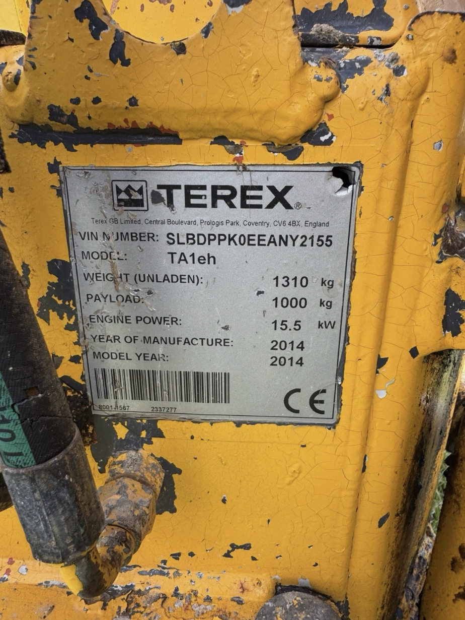 This 2014 Terex 1 tonne hi-tip site dumper is a compact, versatile machine designed for groundwork, landscaping, and general site use.