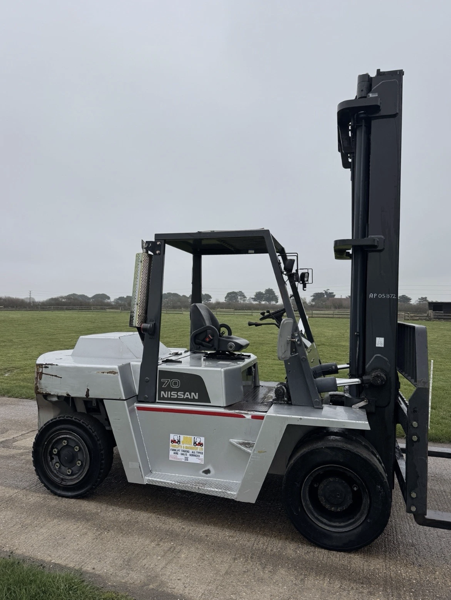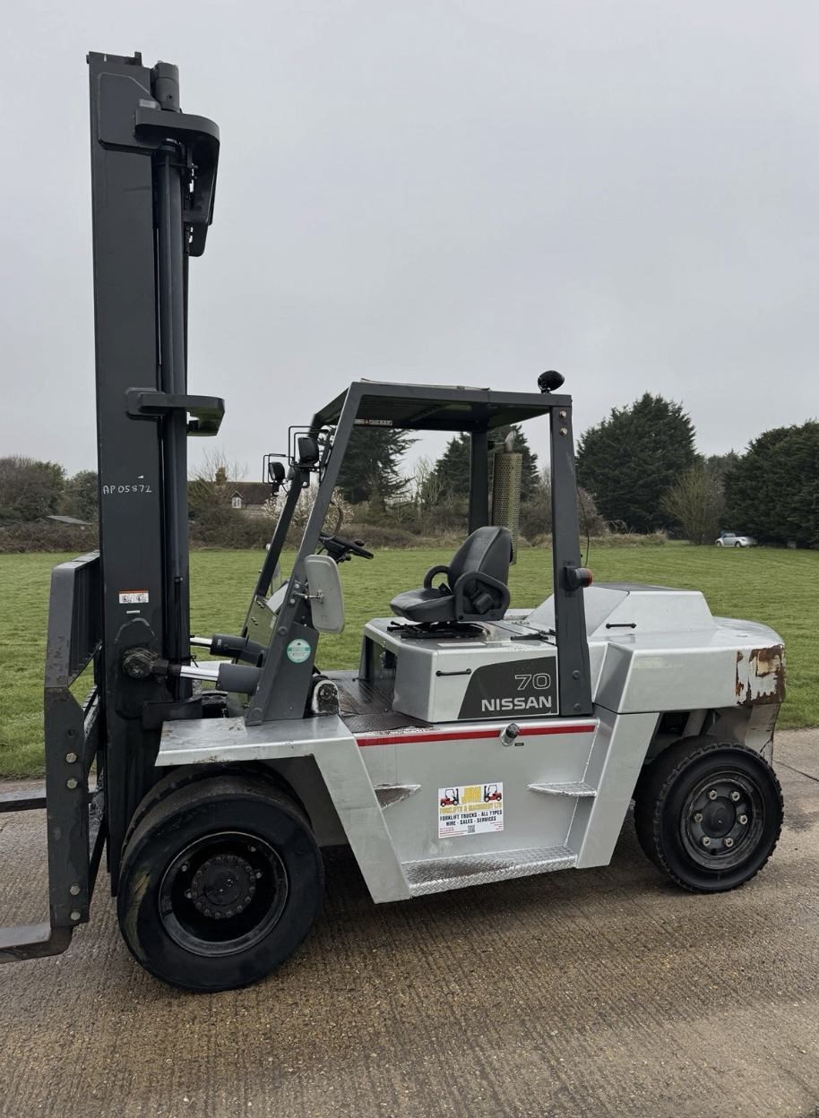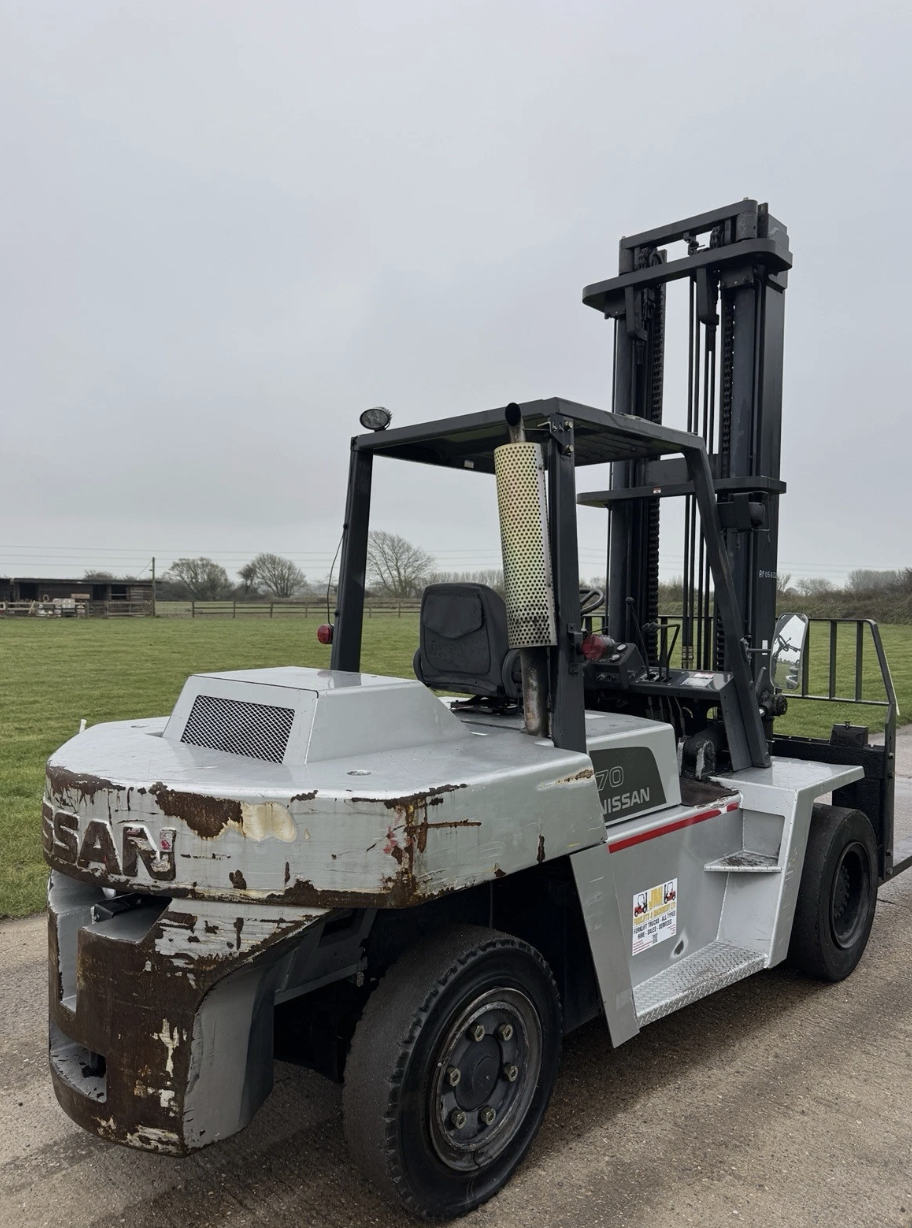This Nissan 7 tonne forklift truck is a powerful and reliable machine built for heavy-duty yard and industrial applications.