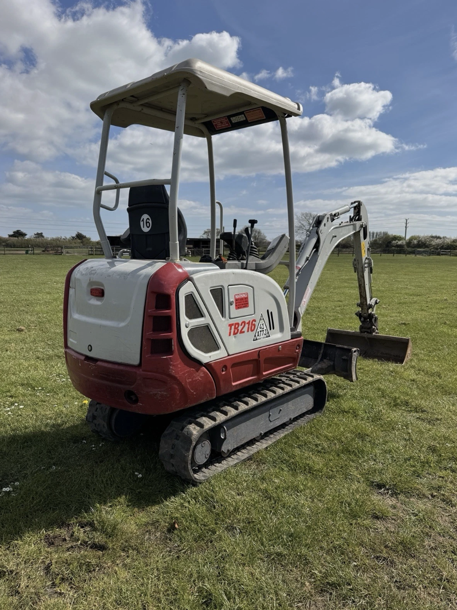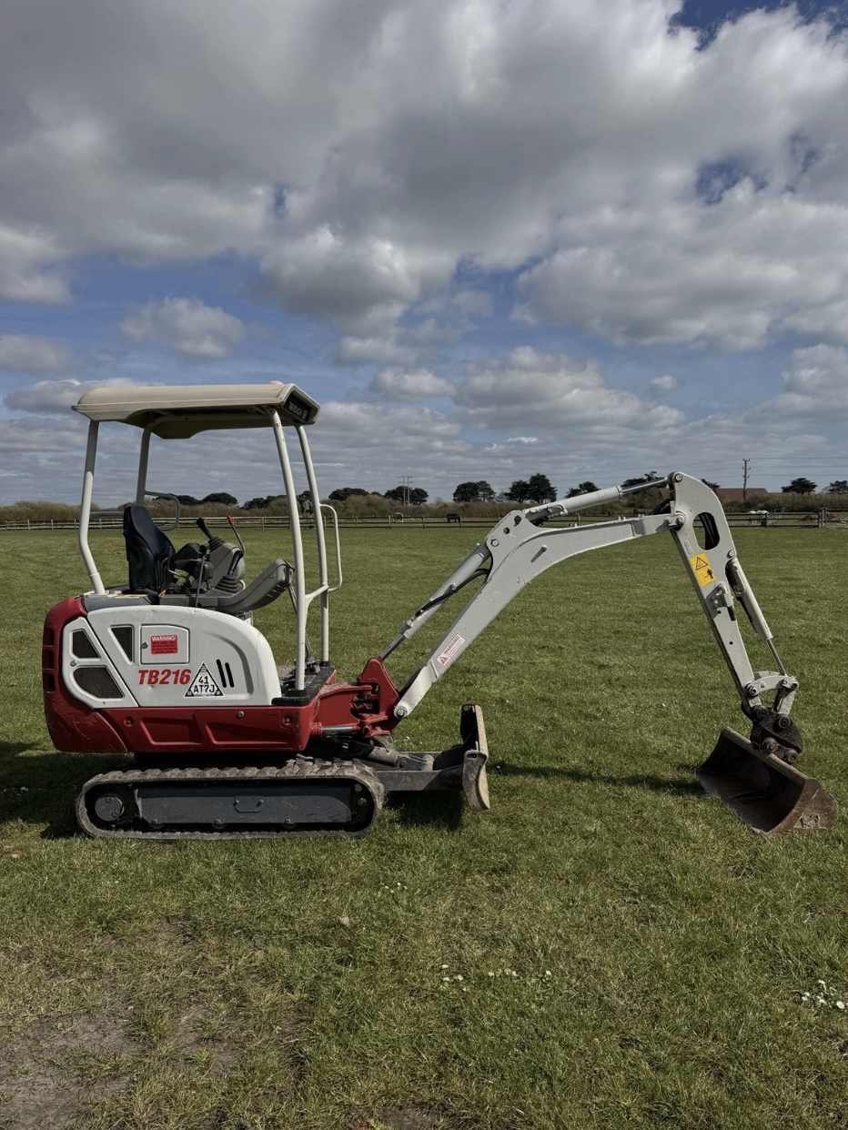 This Takeuchi TB216 mini digger, 1.6 tonne – year 2019, is a compact, reliable machine ideal for groundwork, landscaping, and general site use.