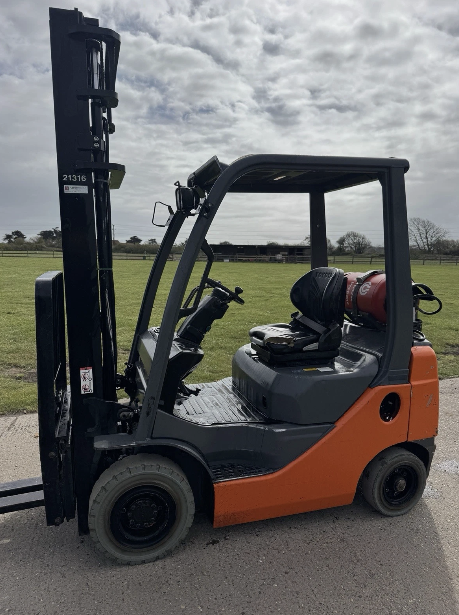 This Toyota 1.5 tonne gas forklift truck, year 2015, is a reliable and compact machine, ideal for warehouse and indoor operations.