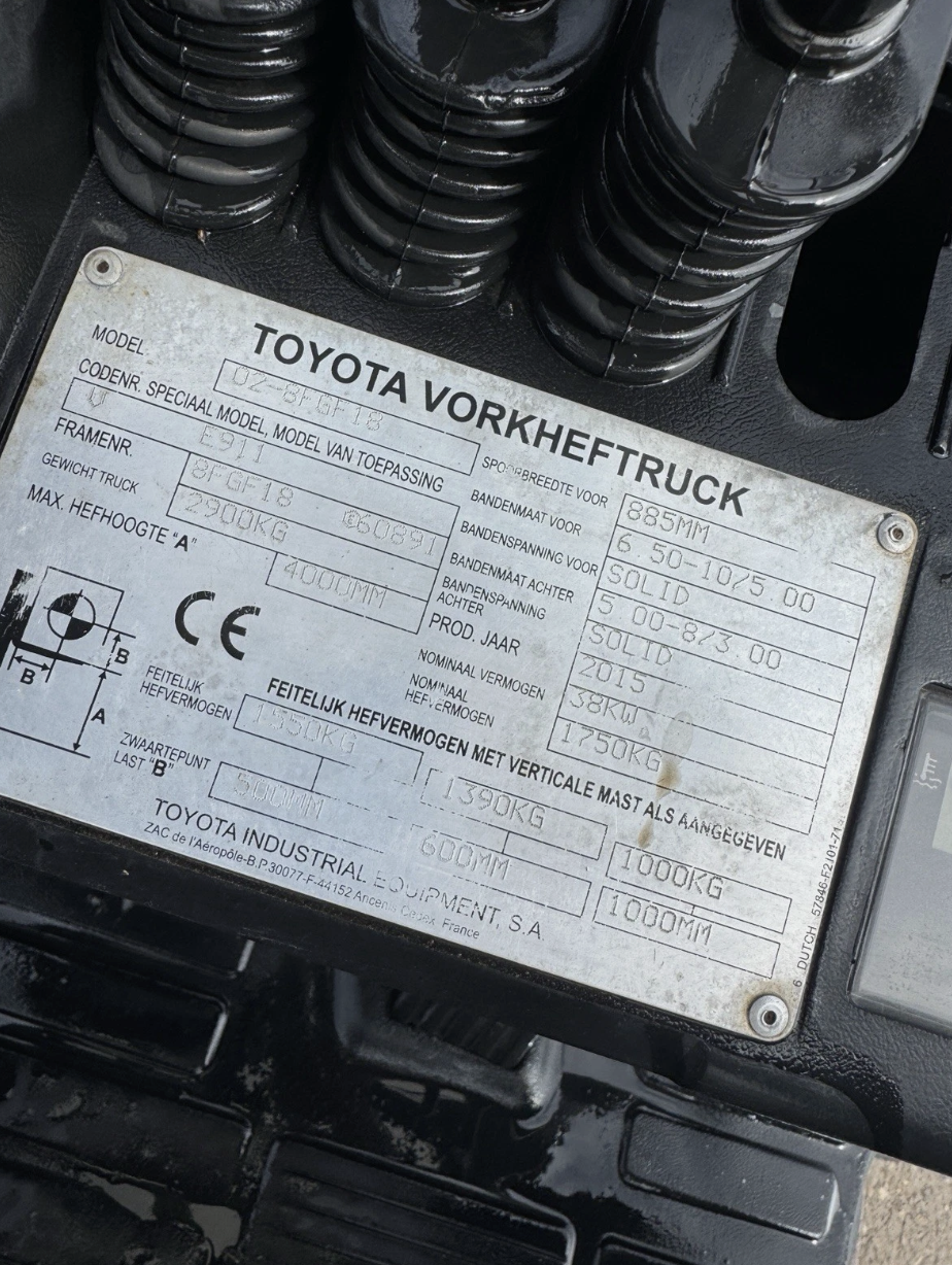 Toyota 1.5 Tonne Gas Forklift Duplex Mast And Side Shift 2015